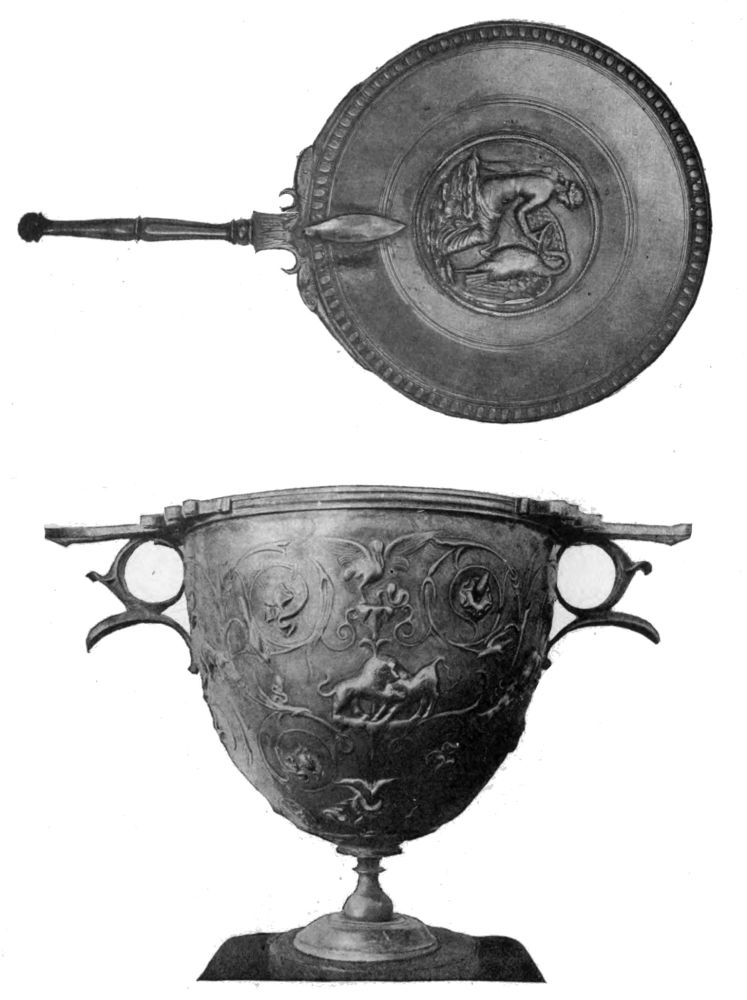 | From photographs by Mansell & Co, of the originals in the British Museum, showing the development of Etruscan bronze-work | ||