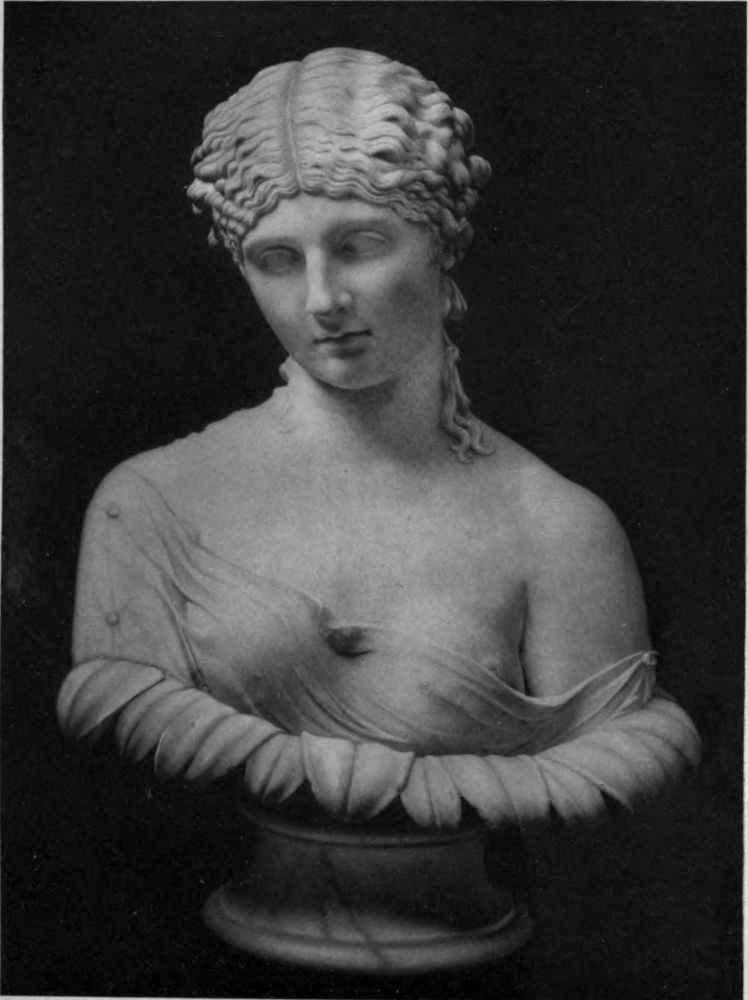 | Engraved by Emery Walker from a photograph by Mansell & Co. of the original marble in the British Museum. An idealised portrait-bust of a lady of the imperial family, possibly Antonia, the work of a Greek artist of the Augustan Age. The name “Clytie” has no authority: the frame of petals is purely decorative | ||