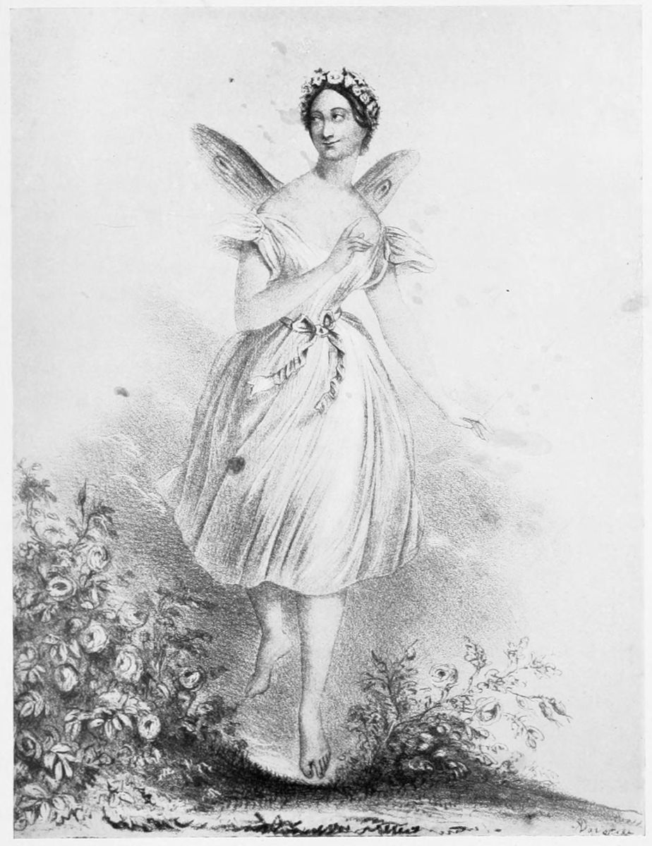 For about a quarter of a century England was enraptured with the ballet. It is impossible for us to attempt to envisage the early Victorian era without the ballet entering prominently into the picture. It appears to present the just embodiment of the formal but naïve gaiety, the untroubled imagination, the somewhat vulgarian æstheticism of the age. The ballerina, with her straightly parted hair, her rose wreath, her innocent affectations, is the complement to the whiskered dandy of the D’Orsay period. The ballet seems to be as closely attached to early Victorianism as are Louis{35} Quinze furniture or Chelsea porcelain shepherdesses to their respective periods. It is not altogether easy for us to regard it otherwise than as a revival. Even now the ballet, in its costumes, its music, its décor, is not free from a tendency to hark back to the thirties and forties of the last century.
