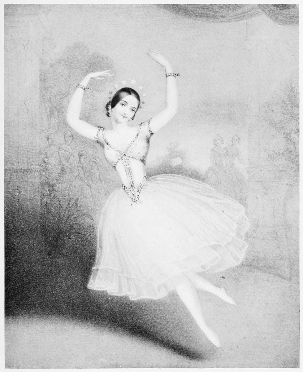 She made her début in 1822 at Vienna in a ballet which her father had composed specially for her, entitled Réception d’une jeune Nymphe à la Cour de Terpsichore. Her success there was immediate and it was not long before the young dancer became one of the “stars” of the Opera. When she appeared in Paris, however, five years later, in Le Sicilien, her reception was somewhat cold. Perseverance was one of Taglioni’s characteristics and she determined to achieve the conquest of the French capital, a measure which was even more necessary then than now to the dancer who aspired to universal fame. She succeeded and her success there set the seal upon her artistic fortunes. She appeared successively in La Vestale, Mars et Vénus, Fernand Cortez, Les Bayadères, and Le Carnaval de Venise. She was acclaimed as the greatest dancer of the day. In La Sylphide she achieved a triumph which resounded throughout the whole of Europe.