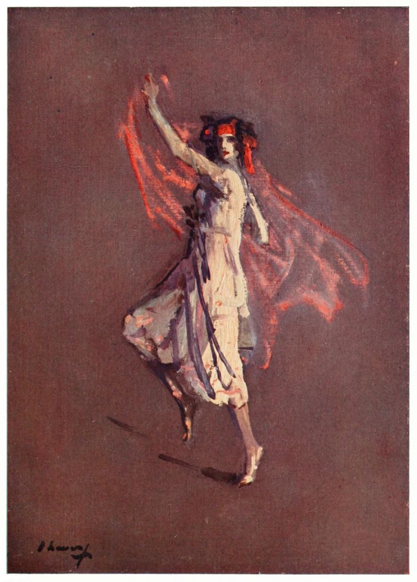 It is forgotten that it is not the subject that makes art serious or trivial, but the mood. There are problem pictures over which the public wrinkles its brows that are frivolous as a picture post-card from the point of view of art. And there are pictures of the bric-à-brac of a room, or a table spread for a meal, that are as grave as tragedy. It all depends upon the quality of the emotion that has gone to the making of them. The dance expresses the most serious thing in life—that is, ecstasy. All dull things are trivial. Art which has only the interest of contemporary problems is ephemeral, for when the problem is solved, the interest vanishes. The dance is the expression of the moods, and the moods are eternal. It has its source in passion, and where there is passion there is life at its utmost and seriousness at its highest.