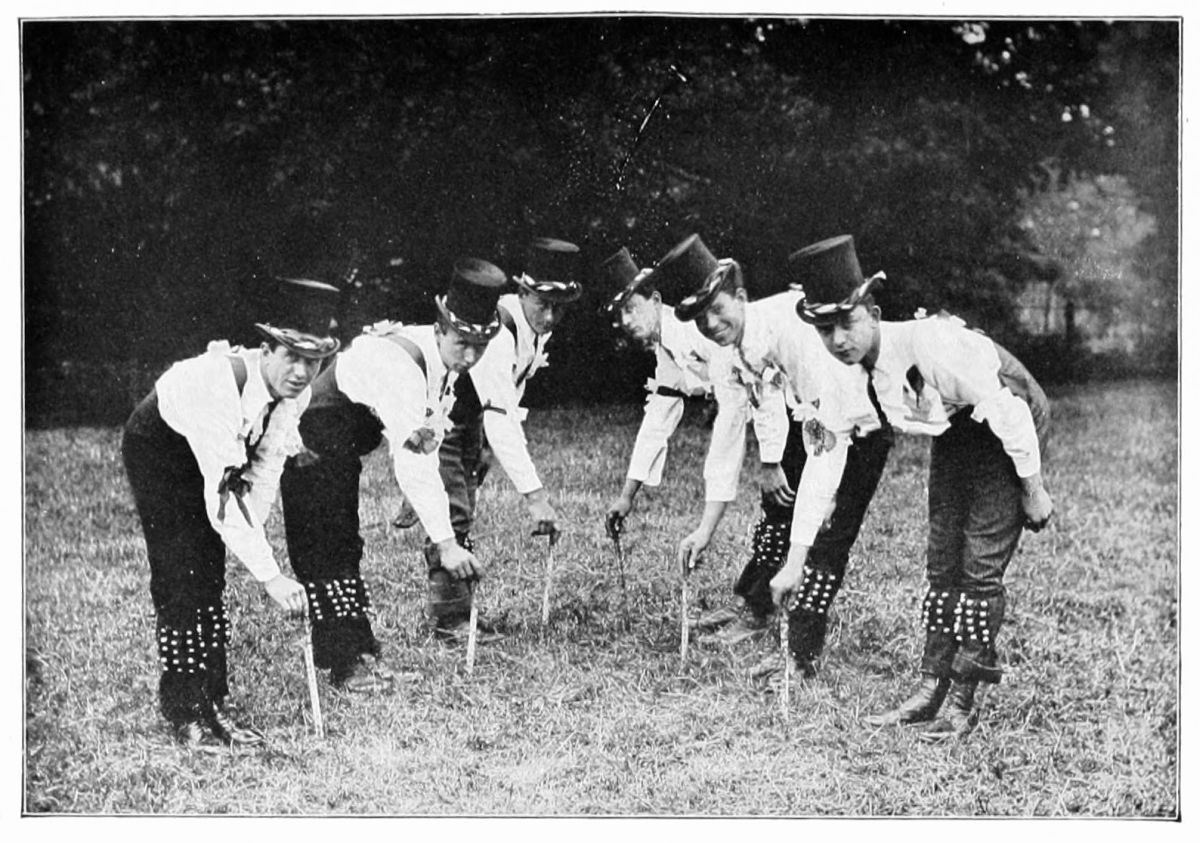In a passage which is none the less illuminating if its truth is perhaps imaginative rather than historical, Mr Max Beerbohm aptly illustrates the spontaneity of the dance and its development out of the ecstasy of some happy moment. “Some Thessalian vintner, say, suddenly danced for sheer joy that the earth was so bounteous; and his fellow-vintners, sharing his joy, danced with him; and ere the breath was spent they remembered who it was that had given them such cause for merry-making, and they caught leaves from the vine and twined them in their hair, and from the fig-tree and the fir-tree they snatched branches, and waved them this way and that, as they danced, in honour of him who was lord of these trees and of this wondrous vine. Thereafter this dance of joy became a custom, ever to be observed at certain periods of the year. It took on, beneath its joyousness, a formal solemnity, it was danced slowly around an altar of stone whereon wood and salt were burning—burning with little flames that were pale in the sunlight. Formal hymns were chanted around this altar. And some youth, clad in leopard’s skin and wreathed with ivy, masqueraded as the god himself, and spoke words appropriate to that august character.”