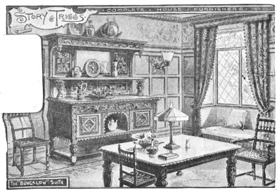 be made by any amateur carpenter and are in any case much better possessions than the dreary, little, badly-made sideboard one finds all too often in far too many suburban residences. These sideboards are machine-made and are cheap and nasty, generally coming to pieces after the first fires have been lighted and always smelling of varnish, and looking more depressing than I can say. If the wall be recessless, and long and hopelessly flat, we should have a good buffet-sideboard in the centre of the wall, in either some good brown wood, or else in my pet stained{121}