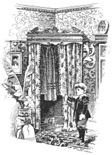 The doors of the upstairs rooms must always be securely curtained, and here one wide, full curtain should suffice. There is not the continual exit and entrance to these chambers there is to the downstairs rooms, so then one curtain upstairs will be enough. These should be kept in place by putting the end rings past the bracket on which the brass rod rests, then the last hooks on the curtain are put into them, thus ensuring that the curtains are always kept drawn. Anyone who has passed by a vista of open bedroom doors, left open when the owners have, at the sound of the gong, rushed downstairs to meals in too great a{57} hurry to put their rooms tidy, will not need to have impressed upon them the fact that it is absolutely necessary to decency to have portières which fall into place behind the person who leaves his or her bedroom door open, and so discloses to all comers the ravages which getting up too often leaves in view. It is a good thing also to conceal the entrance to the bathroom and lavatories by a curtain, which should depend from a beaten iron arm which stretches straight out into the passage. This arm can be procured from Bartholomew & Fletcher for about 18s. 6d., while the curtain should be heavy; printed velveteen made double and fan-edged making an absolutely perfect if somewhat expensive curtain. Godfrey Giles has a charming velveteen, which is a mixture of blue and green. Wallace has a beautiful yellow and cream one, and Smee & Cobay have these velveteens in most colours, notably in a rich and exquisite red, which it is a pleasure to look at, and which also wears extremely well, even in windows where the sun has a certain amount of actual power, and is never really kept out at all.{58}