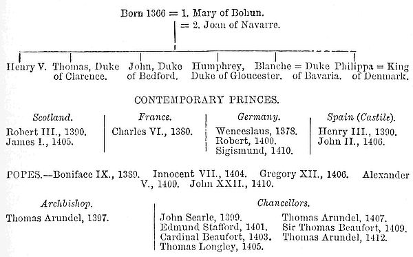The Author has not scrupled to avail himself of the works of modern authors, though, in most cases, he has verified their views by reference to original authorities. In the earlier period the works of Professor Stubbs, Mr. Freeman, and Dr. Pauli; in the Tudor and Stuart period those of Froude, Ranke, and Macaulay; in the later period the histories of Miss Martineau and Lord Stanhope have been of the greatest assistance. Greater stress has been laid upon the later than the earlier periods, as is indeed obvious from the divisions of the work. With regard to the starting-point chosen, it may be well to explain that the English invasion was fixed upon, because it so thoroughly obliterated all remnants of the Roman rule, that they have exerted little or no influence upon the development of the nation—the real point of interest in a national history. It is hoped that the genealogies of the great families will assist in the comprehension of mediæval times in the history of which they played so large a part, and that the maps supplied will suffice to enable the reader to follow pretty accurately,[vii] without reference to another atlas, the military and political events mentioned. A brief and rapid summary for the use of beginners was originally projected to preface the work, but the brevity required by a book of this description rendered such an addition impossible without injury to the more important part. An attempt has been made to replace it by a very full analysis, which, in the hands of a careful teacher, has been proved by experience a useful method of teaching the main facts of history.