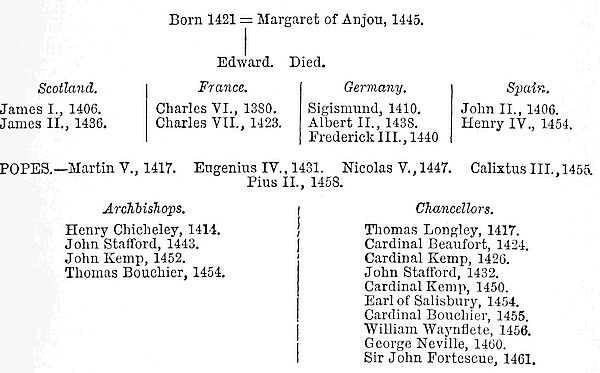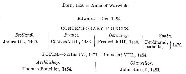 The object of this book is expressed in the title. It is intended to be a useful book for school teaching, and advances no higher pretensions. Some years ago, at a meeting of Public School Masters, the want of such a book was spoken of, and at the suggestion of his friends, the Author determined to attempt to supply this want. The objections raised to the school histories ordinarily used were—first, the absence of historical perspective, produced by the unconnected manner in which the facts were narrated, and the inadequate mention of the foreign relations of the country; secondly, the omission of many important points of constitutional history; thirdly, the limitation of the history to the political relations of the nation, to the exclusion of its social growth. It was at first intended to approach the history almost entirely on the social and constitutional side; but a very short trial proved that this method required a too constant employment of allusions, and presupposed too much knowledge in the reader, to be suitable for a book intended primarily for schools. It was therefore resolved to limit the description of the growth of society to a few comprehensive chapters and passages, and to follow the general course of history in such a way as to bring out as clearly as possible the connection of the[vi] events, and their relative importance in the general national growth. This decision, though taken against his inclinations, the Author can no longer regret, as the social side of our history has been so adequately treated by Mr. Green in his History of the English People, of the approaching publication of which he was at the time quite ignorant. On the same grounds of practical utility, it has been thought better to retain the old and well-known divisions into reigns, rather than to disturb the knowledge boys have already gained by the introduction of a new though more scientific division.