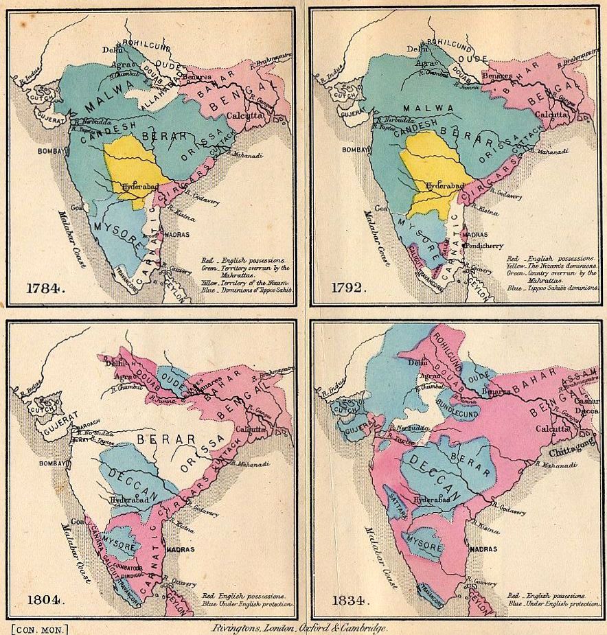 INDIA, SHOWING ROUGHLY THE GROWTH OF THE ENGLISH POWER.