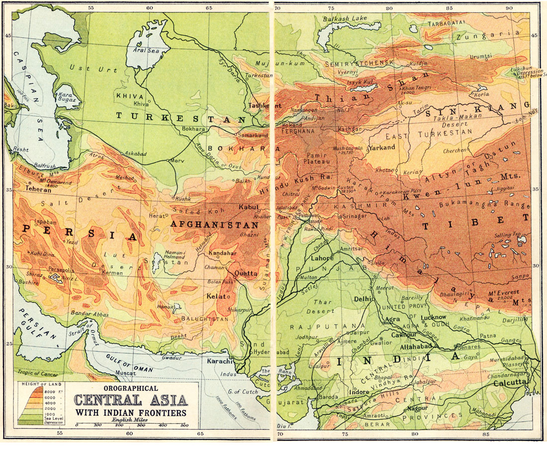 | Zarafshan River, Turkestan. 40N. 67E. | 45 |