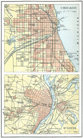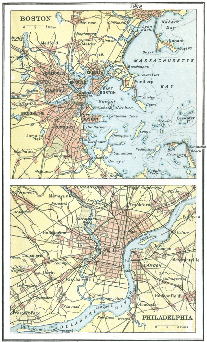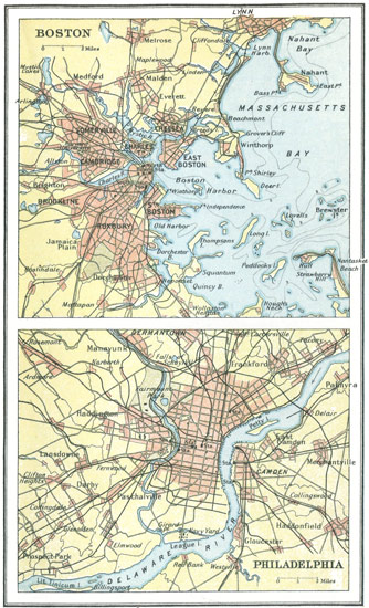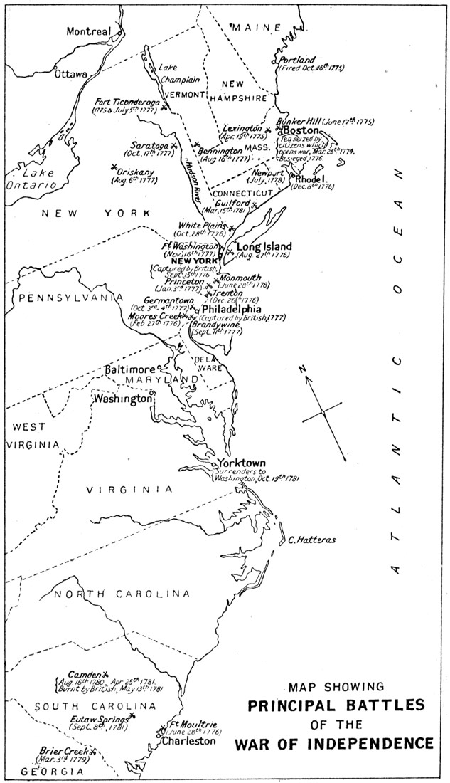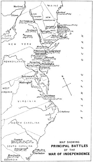 As with the great rivers, so with the great American cities. You can compare "old New York," as represented in one page, with the new New York and its environs which are a world's wonder to-day. Then again you can take the chart of the Early Highways that ran westward into the wilderness and estimate how the power of the engineer has, since the railway came, caught the States in an iron network and rearranged the Americas. Battlefields and sieges, by which the right of the new country to its national life and individuality was [viii] "wrenched," as Tennyson said in his address to the old country,[1] are not forgotten.