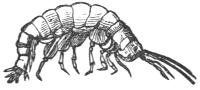 - 14. Cyclops, magnified, showing egg-sacs.