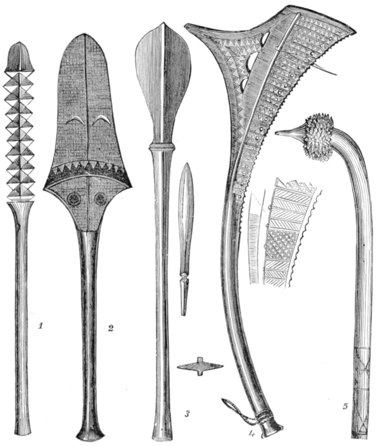 Abyssinians, 646-647. Ahts, 1355. Ajitas, 920. Andamaners, 889. Apono, 487. Araucanians, bolas, 1197. Ashangos, 480. Ashanti, 556. Australians, throw stick, kangaroo rat, boomerang, 719-724, 728-743. Balonda, 378. Banyai, axe, 366. Bari, 464. Bechuanas, 289. Bedouins, 681. Begharmis, 635. Bornuese, 623. Bosjesmans, 257, 261. Bouka, 971. Britain, New, 970. Caledonians, New, 884. Chinese, jingall, cross-bow, 1433-1436. Congoese, 615. Dahomans, 561, 571. Damaras, 312. Dinkas, 469. Djibbas, 464. Dor, 444. Dyaks, sumpitan, or blowgun, parang-ihlang, kris, 1119-1131. Esquimaux, harpoon, 1339. Fans, 531. Fijians, 948-952. Fuegians, 1165. Ghoorkas, kookery, 1395. Guianans, 1223-1236. Guinea, New, 913. Hamran Arabs, 675. Hebrides, New, 972. Hervey Islanders, 1034. Hottentots, 232. Illinoans, 1112. Indians, East, 1400-1406. Indians, Gran Chaco, armor, 1212. Indians, N. A., tomahawk, 1282. Ireland, New, 970. Ishogos, 476. Japanese, sword, 1459. Kaffirs, 93, 94, 100-113. Karague, 399. Khonds, axe, 1392. Kingsmill Islanders, 1039. Latookas, 453. Madi, 433. Mantchu Tartars, bows, 1423. Maories, 838-844. Marquesans, 1050. Mincopies, bow, 890. Musguese, 639. Neam-Nam, 443. Nicobarians, 896. Niuans, 1055. Nubians, peculiar sword, 673. Outanatas, 901. Ovambos, 319. Papuans, 900. Patagonians, bolas, 1174-1178. Pelew Islanders, 1107. Samoans, 1019. Sandwich Islands, 1088. Shekiani, 521. Shir, 461. Society Islanders, 1073. Soumaulis, 671. Sowrahs, 1386. Swiss Lake-dwellers, 1474. Tibboos, 633. Vaté, 972. Waraus, 1269. - Wedding, see Dances, Marriage.