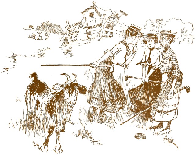 “Oh dear, what shall we do? The goat has swallowed the golf ball.”
