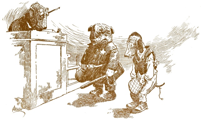 “I run ’im in, yer honor, ’cause he didn’t have his collar on!”