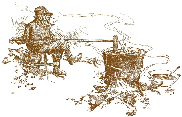 “Reckon it’s ’bout time for th’ dinner horn to blow!”