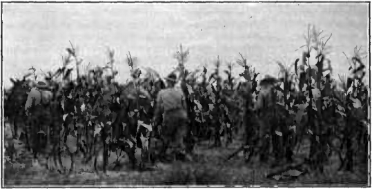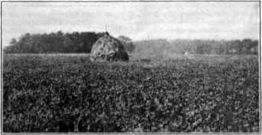 Although crimson clover may be seeded in almost any of the intertilled crops, in this country probably half of it is sown in corn at or shortly after the time of the last cultivation. (Fig. 3.) It is usually possible to make such a seeding, obtain a good growth during the fall and early spring, and mature a crop of hay in time for breaking up the land for another crop of corn. South of the latitude of central Delaware it is even possible to mature a crop of clover seed in time for corn planting. In this way it is possible to grow a crop of corn each year and at the same time steadily increase the fertility of the soil for a series of years. Treated in this manner each succeeding crop of corn can ordinarily be materially increased. Instances are reported where the yield of corn has been gradually increased by this means from 10 bushels per acre at the start until as high as 70 bushels per acre were secured.