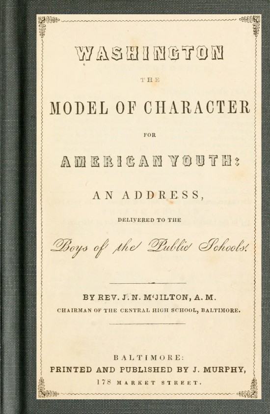 Such is Washington the boy, the man. Such his character as developed in his deeds. In him is seen the man of social virtues, the patriot, and the Christian. And in these departments of human character he shone throughout his life. And may I not hold up such a character as a model before the youth of America; surely such a character is the high aim of an American boy’s ambition! And to win and wear it would be to secure a prize of most exalted eminence. But let it not be forgotten that the palm must be worn by him who wins it.