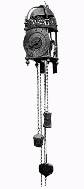 [6] Strictly speaking, De Vyck's clock, invented about 1370, is the earliest known type of the domestic clock. Made for the wealthy few in days when the generality of people did not look upon clocks as necessities, they only exist to-day as rare museum specimens.