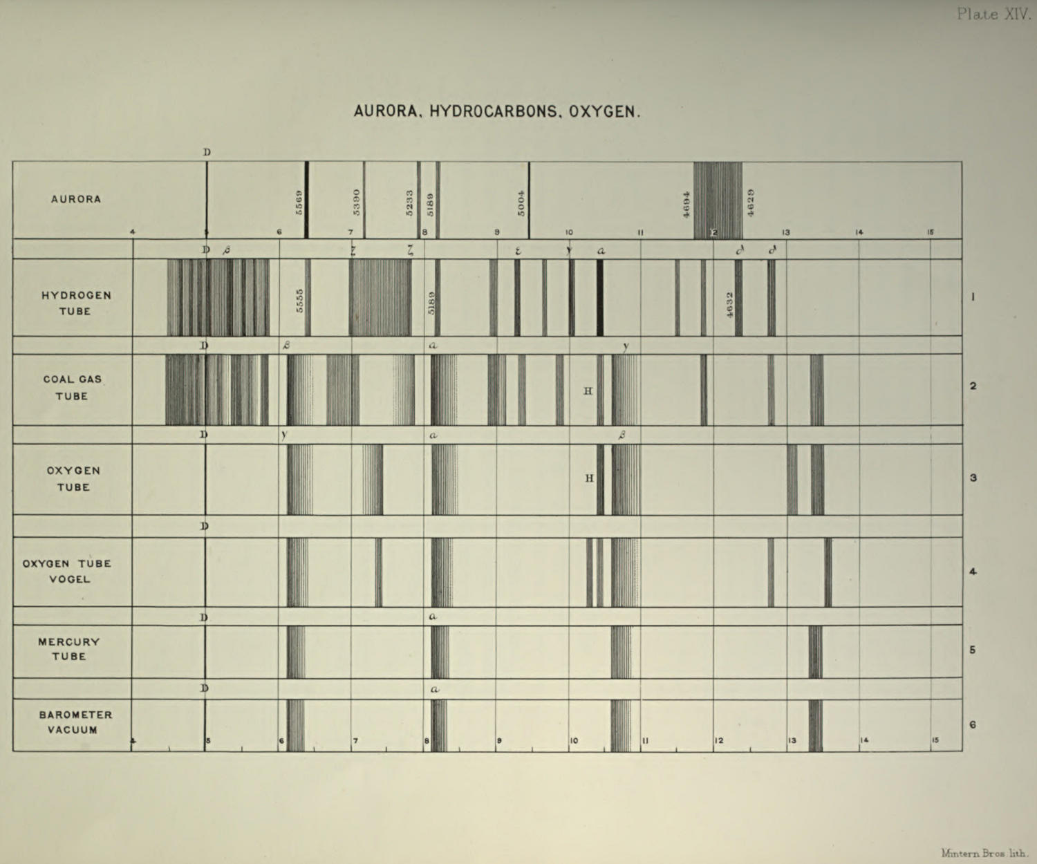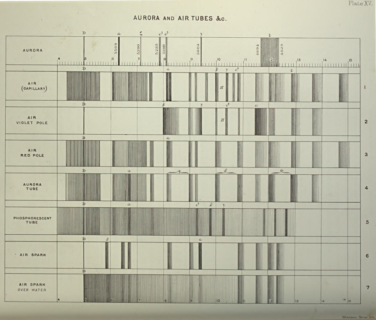 It will meanwhile remain far more in accordance with probability to regard the Aurora-spectrum as a modification of the air-spectrum; since we are already aware, in the case of gases, of the alteration of the spectra by conditions of temperature and pressure; and an agreement, at any rate, quite as certain between the spectrum in question and the spectra of atmospheric gases has been proved above.