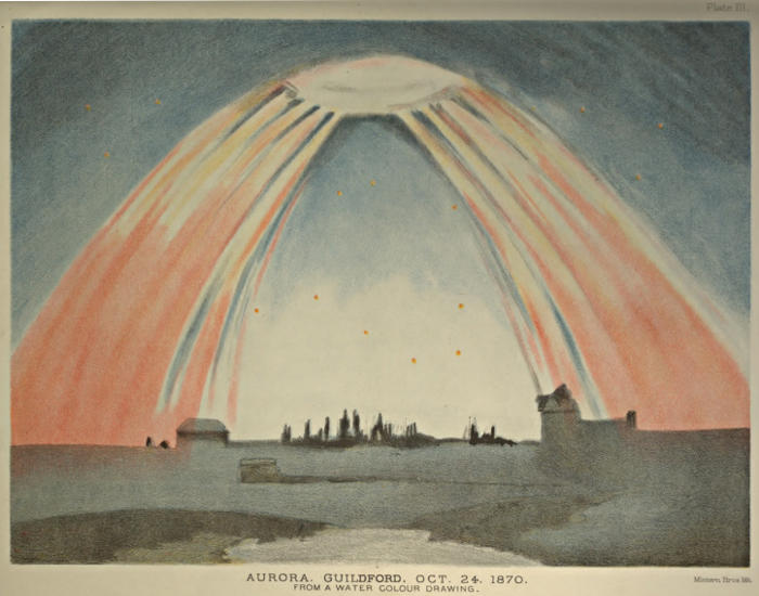 [7] On the occasion of the Aurora of September 24, 1870, Dr. Allnatt says, “the air seemed literally alive with the unwonted phosphorescence.”