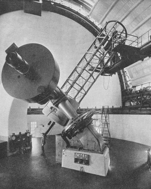 Each type of telescope has its astronomical advantages and disadvantages. The refractor is better suited for visual observations such as the measurement of double stars and the study of planetary detail and is less affected by temperature changes than the reflector. On the other hand the reflector, on account of its perfect achromatism, is the instrument par excellence for photographic observations, and, as more than three-fourths of modern astronomical work is photographic, it appears to be superseding the refractor. This advantage is increased by the fact that the refractor has apparently reached the useful limit in size and that it costs at least three times as much as a reflector of the same aperture. Although each type of telescope has its characteristic type of mounting for astronomical purposes, the principles are the same for each and can probably be most easily followed by describing the essential parts of the mounting of the 72-inch telescope.