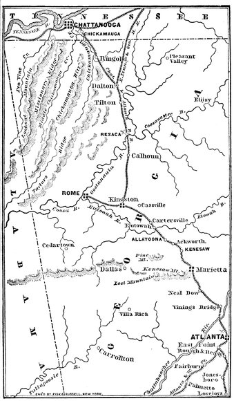 Congress having now revived the grade of Lieutenant-General, which had been bestowed as an actual rank in time of war only on General Washington (although given to General Scott, by brevet), the honor was conferred by the President, with the approval of the Senate, upon General Grant, on the 9th of March, 1864 (the commission bearing date of March 2), and General Sherman succeeded to the command of the Military Division of the Mississippi, while McPherson took a19Sherman’s place with the army of the Tennessee, and General Halleck, hitherto General-in-chief, was made Chief of Staff at Washington.