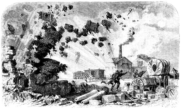 Grant, upon reaching the south side of the James, ordered an attack upon Petersburg, which failed of success in consequence of the want of proper coöperation on the part of the cavalry. A series of attacks upon the rebel works ensued, and the city was fairly invested by the 22d of June, except on its northern and western side. On that day, also, the Union troops, by dint of hard fighting, secured possession of the South Side (Petersburg and Danville) Railroad, while Wilson’s and Kautz’s cavalry attacked and destroyed a considerable section of the Weldon Railroad, and a large amount of stores; but were surrounded by a large rebel force before they could regain the Union lines, and lost seven or eight hundred men. An interval of comparative quiet succeeded these movements, during which an extensive mine was run under one of the enemy’s forts, and in order to divert the attention of General Lee’s force, at the time for its explosion General Grant ordered a feint to be made north of the James, against their left. This attack, known as the action of Strawberry Plains, was entirely successful; the rebel left was turned, and four heavy guns were a23captured. On the 30th of July, the mine, containing eight tons of powder, was exploded, and under cover of a terrific cannonade along the whole length of the Union lines, an assault was made upon Petersburg. Fatal delays and misunderstandings, at the critical moment, gave the enemy time to recover somewhat from the surprise of the explosions, and their courageous defense foiled the Union attack, which resulted disastrously, especially to the colored troops engaged in it. On the 12th of August, the 2d Corps fought the battle of Deep Bottom, north of the James, with a loss to the rebels of their position, 500 prisoners, 6 cannon and 2 mortars. On the 18th, the Weldon Railroad, at Reams’ Station, was surprised, and occupied by the 5th Corps, which, in turn, was heavily attacked on the 19th by the rebel troops, and fell back; but being reinforced by the 9th Corps, succeeded in partly retrieving their position, but with a loss of nearly 4,000 men.