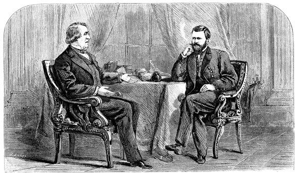 General Grant, by special order of President Johnson, accompanied him in his tour in the summer of 1866, to Chicago and St. Louis; but during the whole journey he neither by word or look manifested, as he doubtless did not feel, any sympathy with Mr. Johnson’s “policy” of reconstruction. In the correspondence relative to the New Orleans massacre, he manifested his abhorrence of the act, though he knew that it had received the quasi-sanction of the President. With his habitual reticence, he refrained from any interference with, or expression of opinion upon, political questions; and though urged as a candidate for the Presidency at first by conservative Republicans and some Democrats, he manifested no interest in the movement, and the most skillful pumping failed to elicit from him any expression of opinion which the politicians could make available. His duties as General of the army were performed quietly, promptly, and satisfactorily, and the hospitalities of his house in Washington were freely tendered to men of all parties and of none.