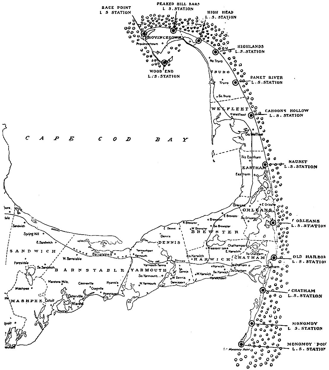 MAP OF CAPE COD, SHOWING LOCATION OF U. S. L. S. STATIONS.