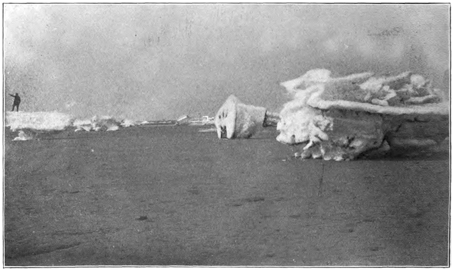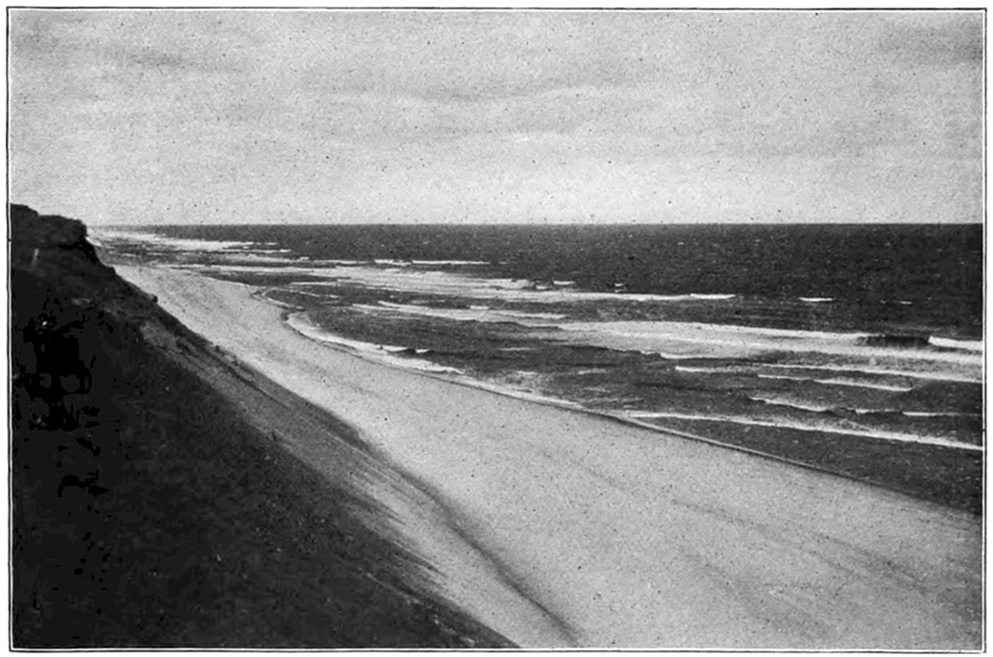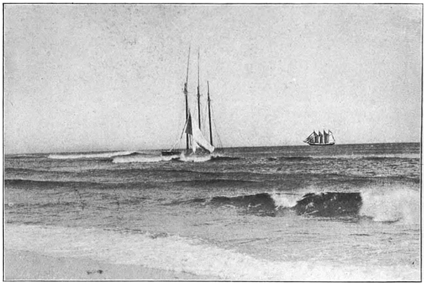 Cape Cod extends directly out into the Atlantic, like a gigantic arm with clutched hand, bidding defiance to the mighty ocean, for a distance of forty miles. Shifting sand bars parallel its eastern shores, which are an unbroken line of sandy beaches from Monomoy Point at Chatham to Wood End at Provincetown, a distance of about fifty miles. Myriads of shoals lie along the coast, and unnumbered vessels have met their doom along its shores, which rightly bear the name “Ocean Graveyard.”