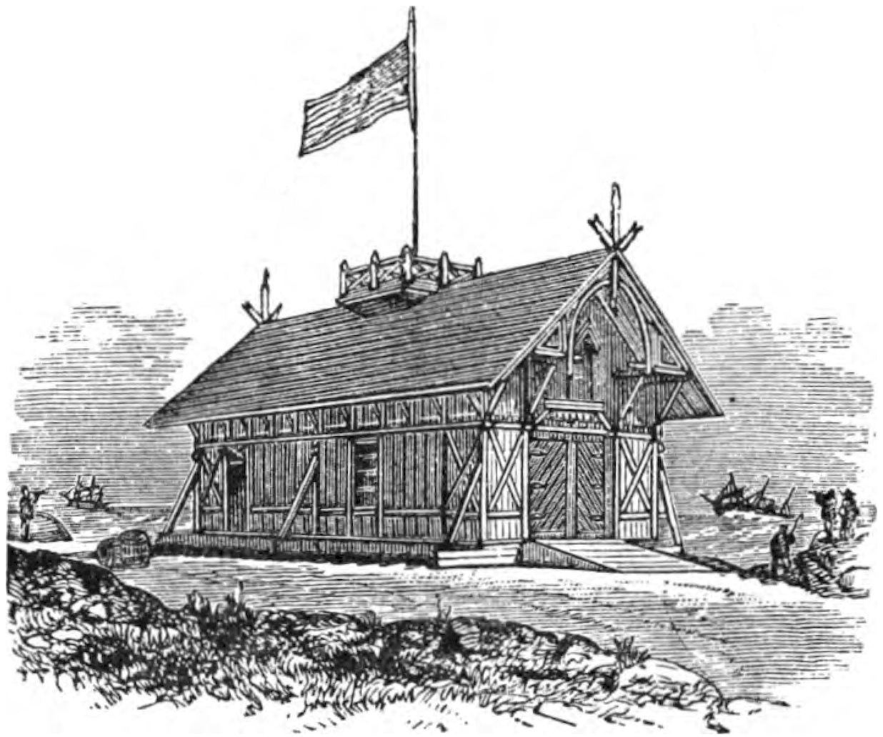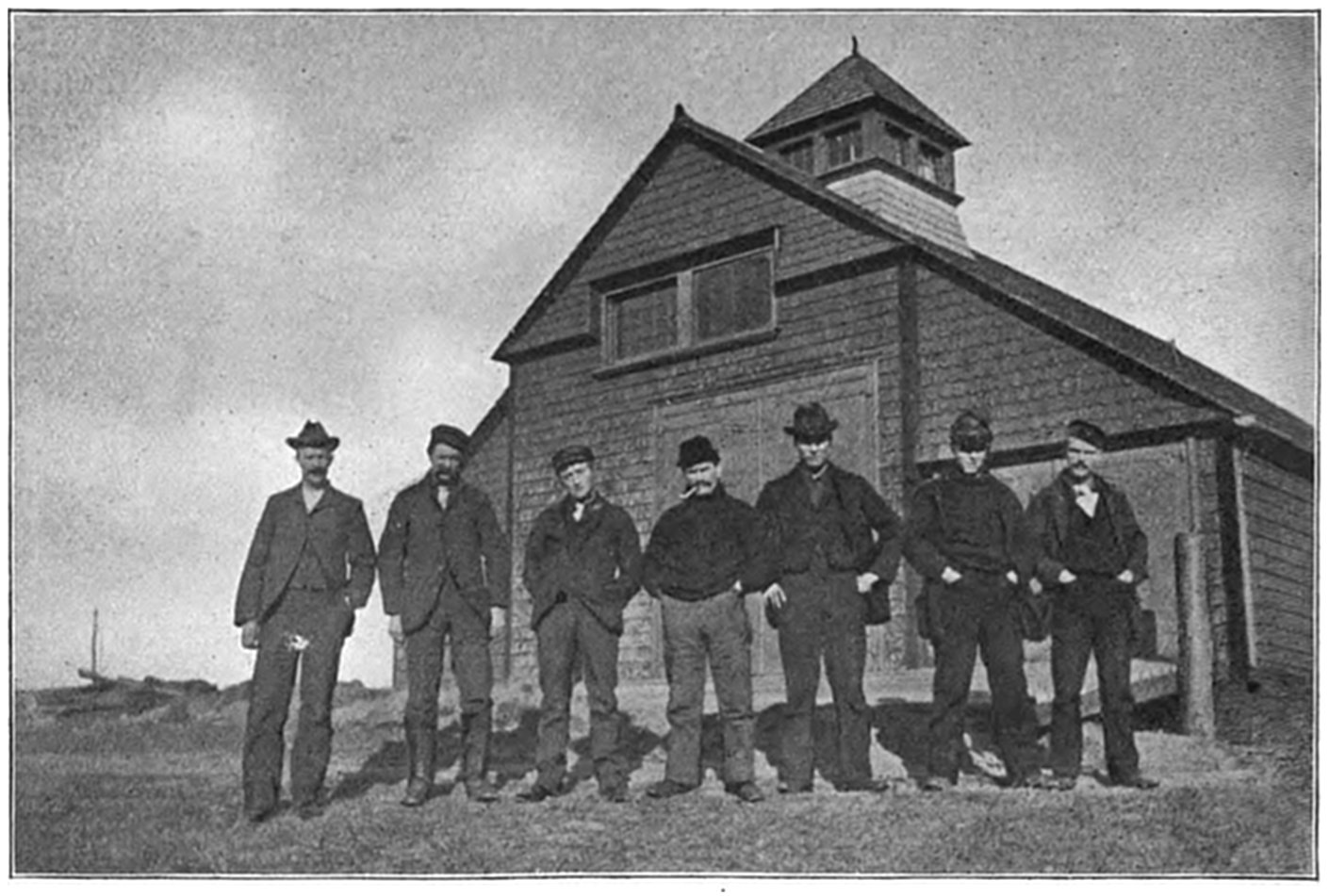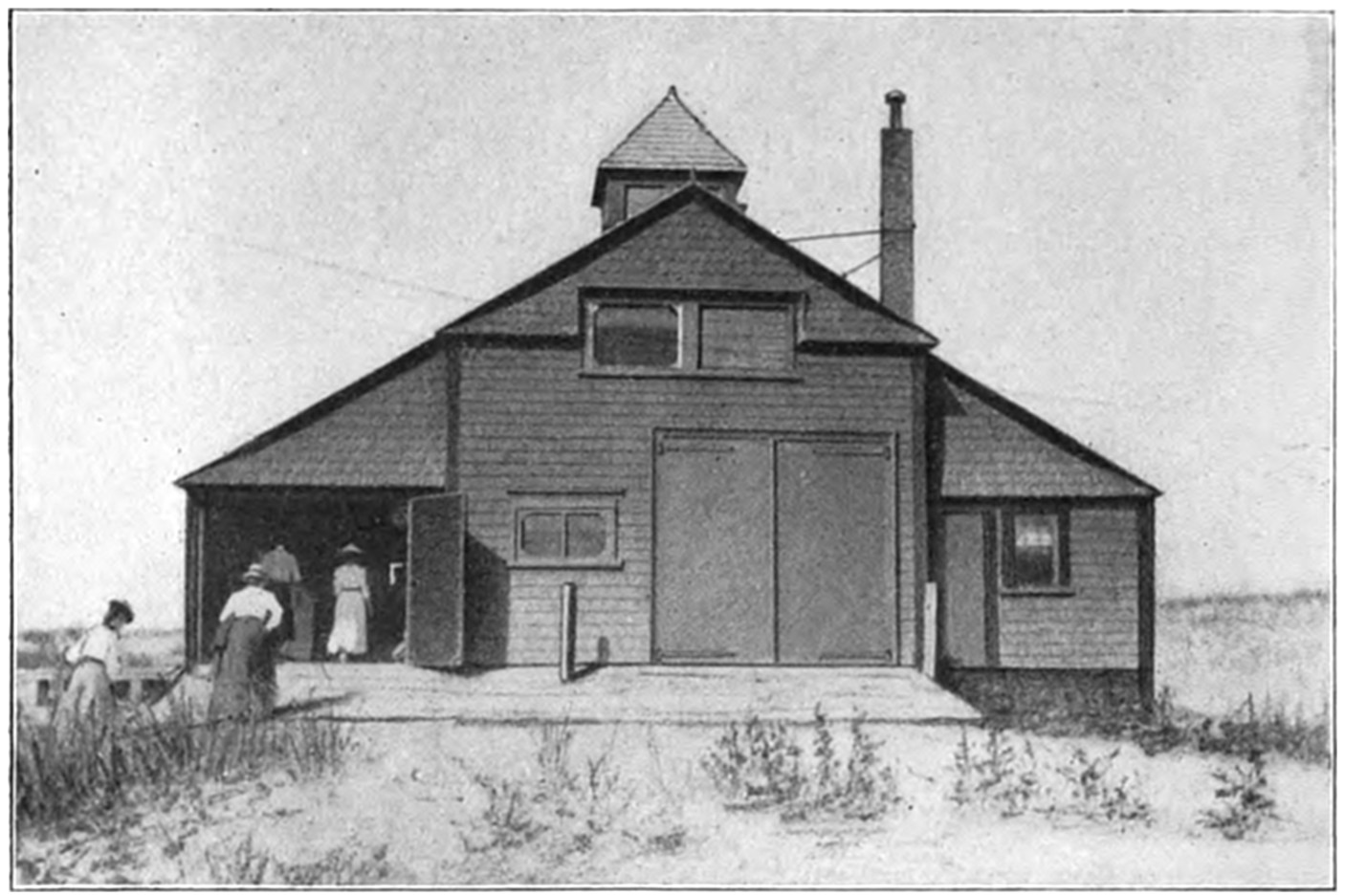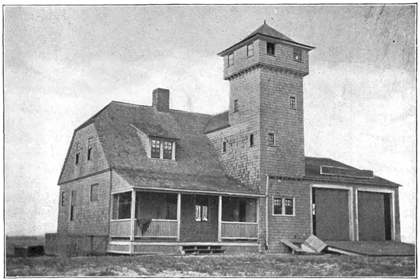 The Society first began its work of rendering assistance to shipwrecked mariners by building huts on many of the desolate sections of the coast. These huts were for the shelter of shipwrecked persons who might reach the shore. The first building of this kind was erected on Lovell’s Island in Boston Harbor in 1807. Later, the Society established the first life-boat station at Cohasset, subsequently erecting others along the coast, and extending its good work to the shores of Cape Cod.