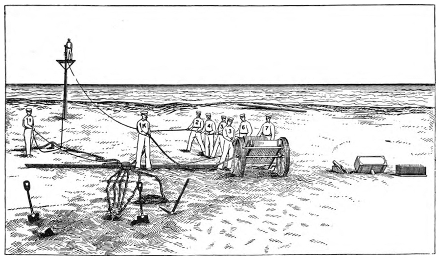 The first appropriation made by Congress for rendering assistance to the shipwrecked from shore was March 3, 1847. For nearly a half century prior to this time the efforts of the government for the protection of mariners upon the coasts of the United States were mainly in establishing the coast survey and extending the lighthouse system.