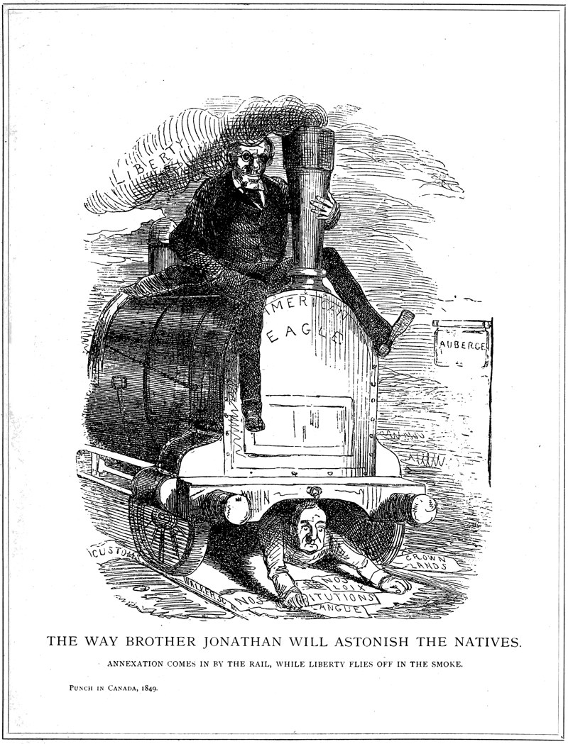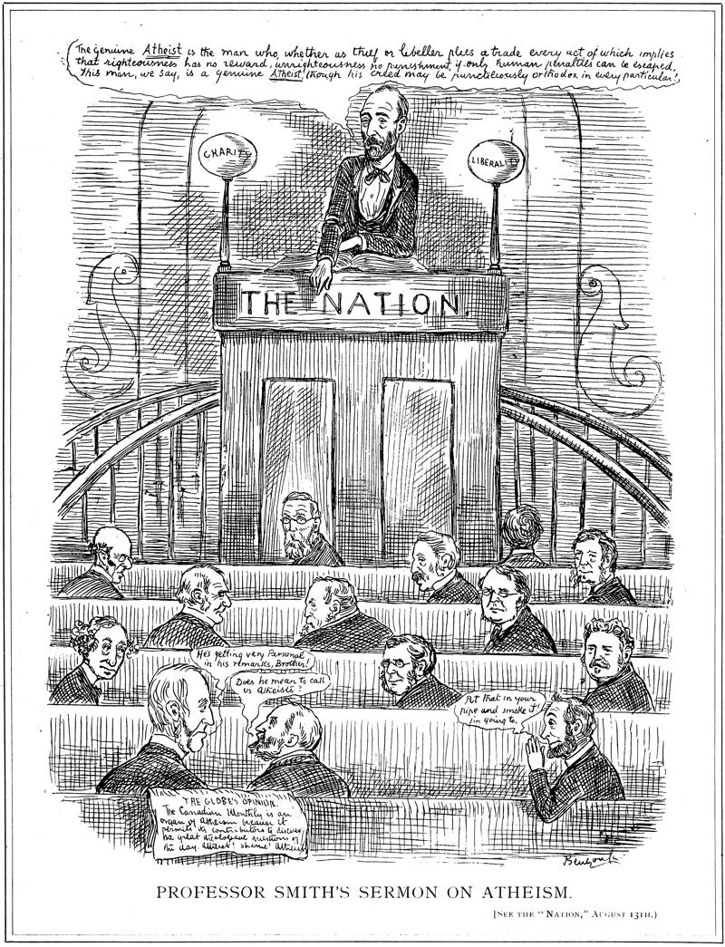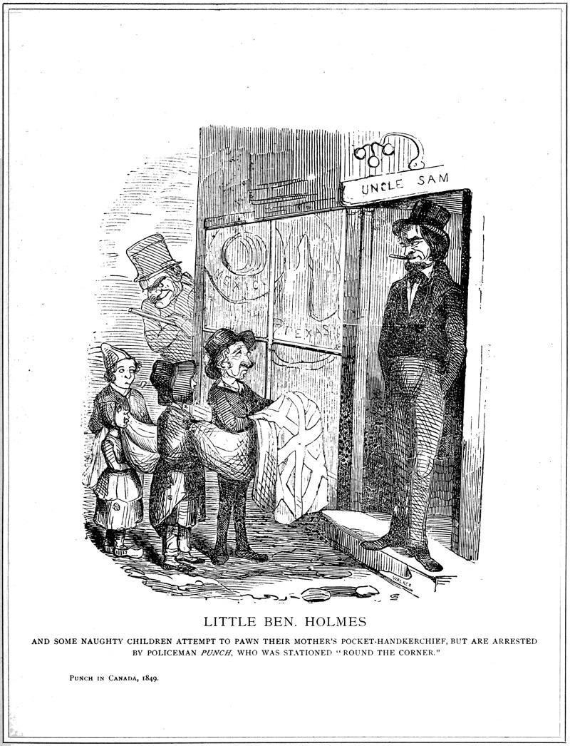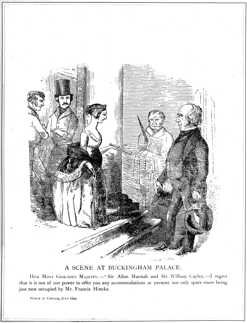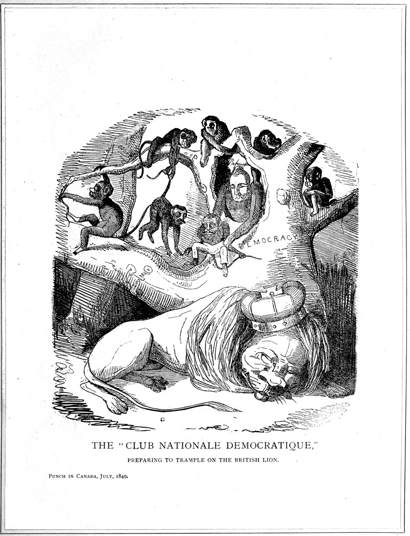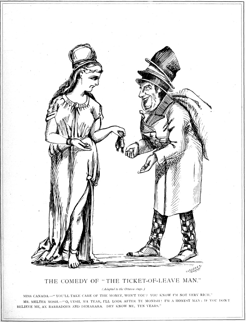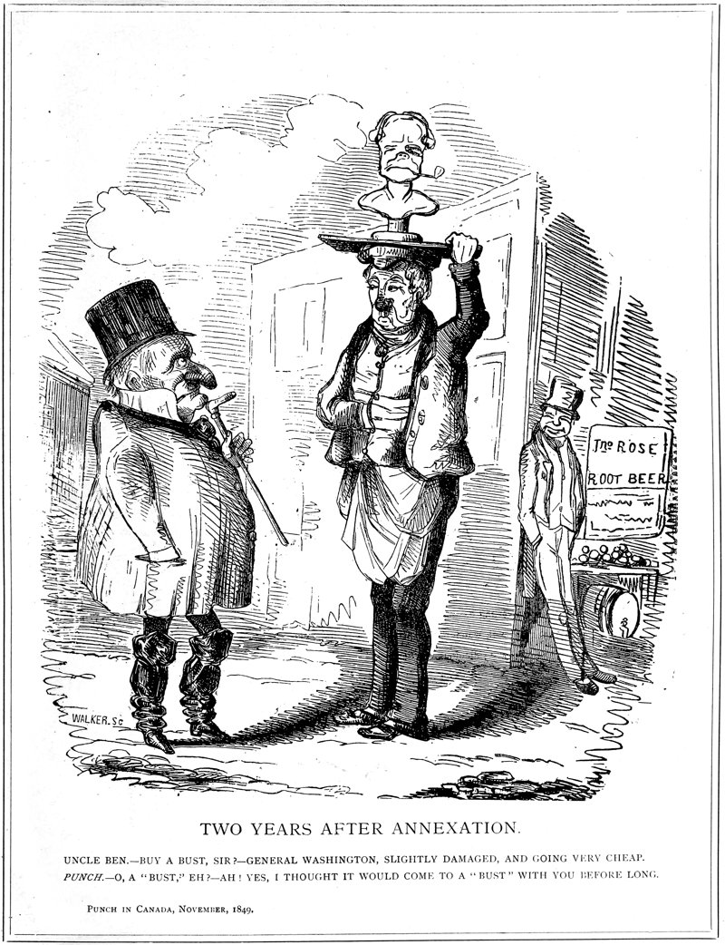 A “caricature history” does not mean that history is caricatured. On the contrary, a good caricature enables us to see, in a true light, facts that might otherwise be hidden or misrepresented. We understand current events and the social life of England from the illustrations of Punch more truly than from the columns of the Times or the Morning Post. Canada is only beginning life, and our politics touch subjects of general interest so seldom, that it is sometimes thought and said that there is no field for a Canadian Punch; but the fact, perhaps not generally known, that for the last forty years, at any rate, we have rarely been without artists whose pictures on the questions of the day have appealed successfully to popular humor, proves that our political life has been robust from the beginning. Some of these artists had to content themselves with publishing fly-sheets that provoked the laughter of the town, but that had no chance of obtaining more than a local reputation. For others, organs well-known in their day, such as Punch in Canada, Diogenes, and Grinchuckle, were established at different times prior to 1873, when Grip vaulted into the seat which he has occupied since to the satisfaction of all Canada. Requests have been frequently made for a work containing a continuous series of his cartoons, and in now acceding to these it has been thought well to give illustrations of what was done among us in the same line previously. Fortunately the publishers were able to obtain selections from the sources to which I have referred, and also from the Canadian Illustrated News; and the First Volume of this work thus gives something like a continuous pictorial history of the events that have stirred popular feeling most deeply since 1848. They believe that those older representations will be heartily welcomed, and they desire to thank all who have assisted in making the work so extended.