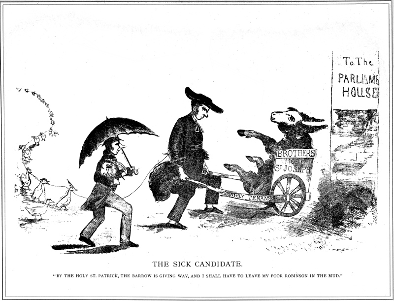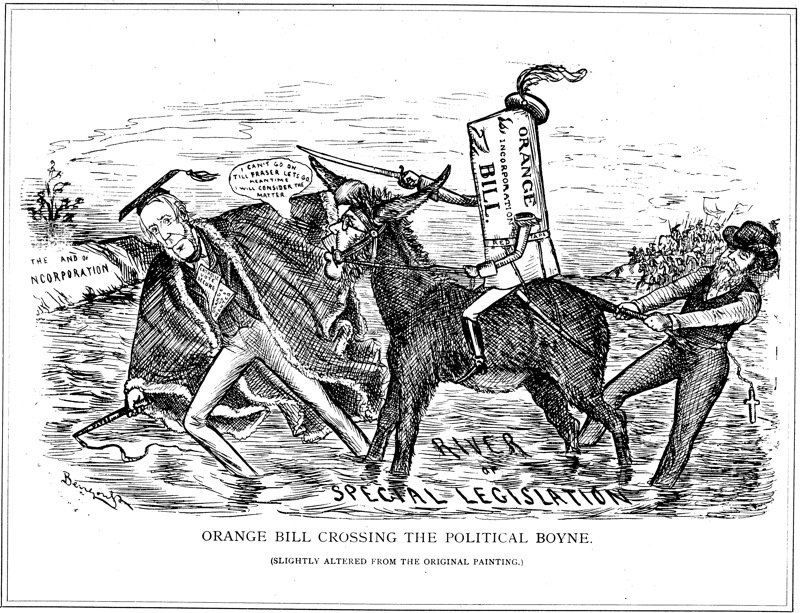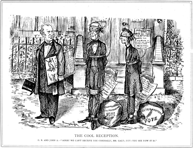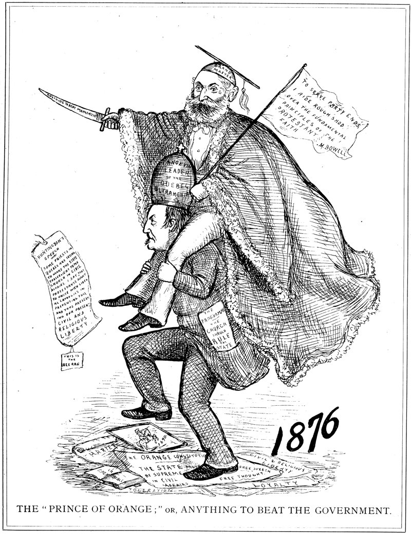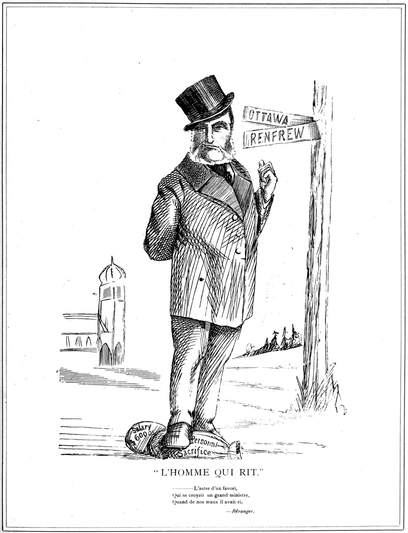 A promise of a seat in the prospective Tory Cabinet was made to Mr. John O’Donohue on condition that he would manage the “Catholic vote” in the Conservative interest in the forthcoming election. This reward Mr. O’Donohue did his best to win, but by the intervention of the Orange leaders, the “bargain” as made was not allowed to take effect. Mr. O’Donohue never got the portfolio, but had to content himself with a Senatorship instead.