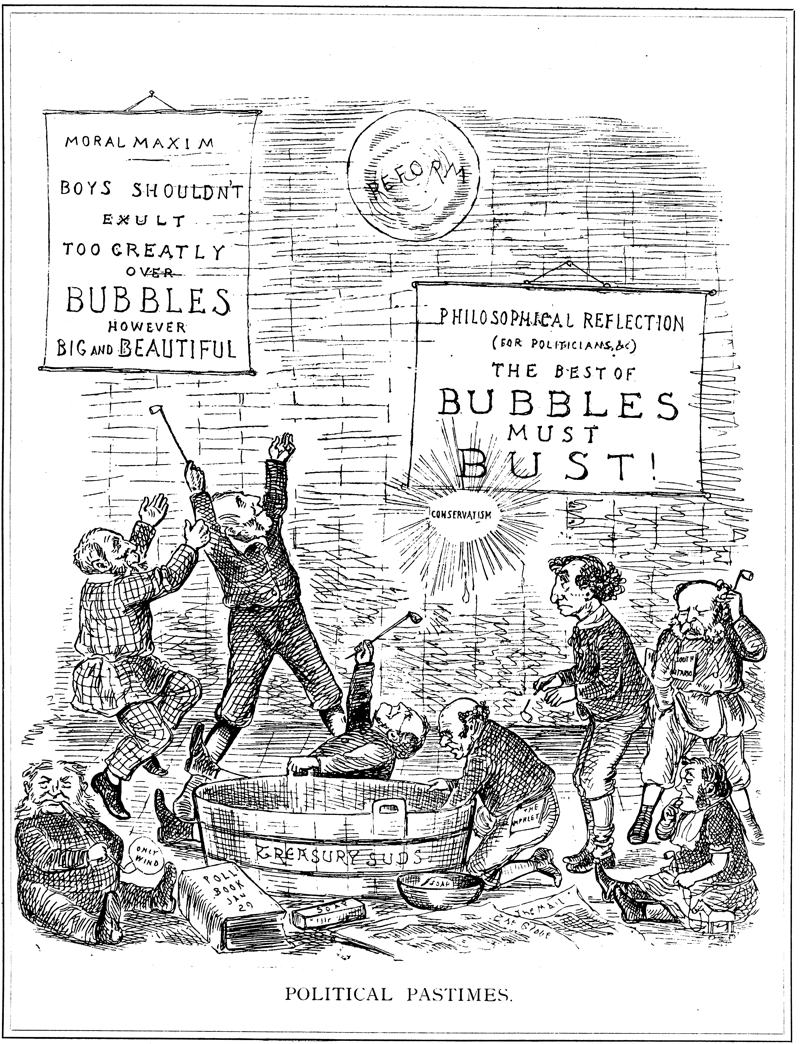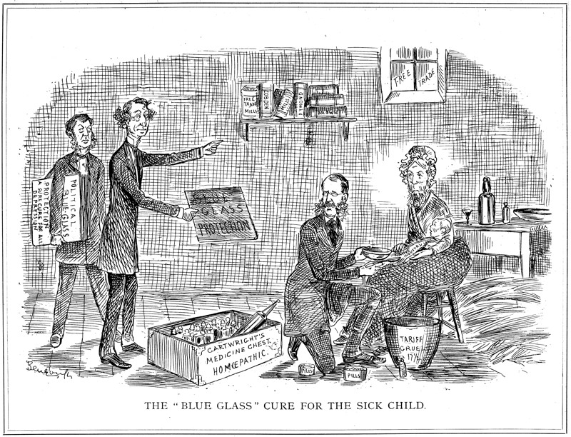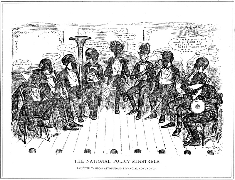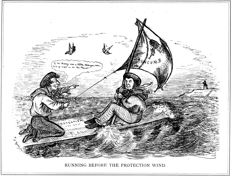 The point as to how a revenue was to be obtained under an exclusive tariff without a resort to direct taxation was of course raised by the opponents of the Protective theory, and no satisfactory answer had been given to the “conundrum” up to the date of this cartoon.