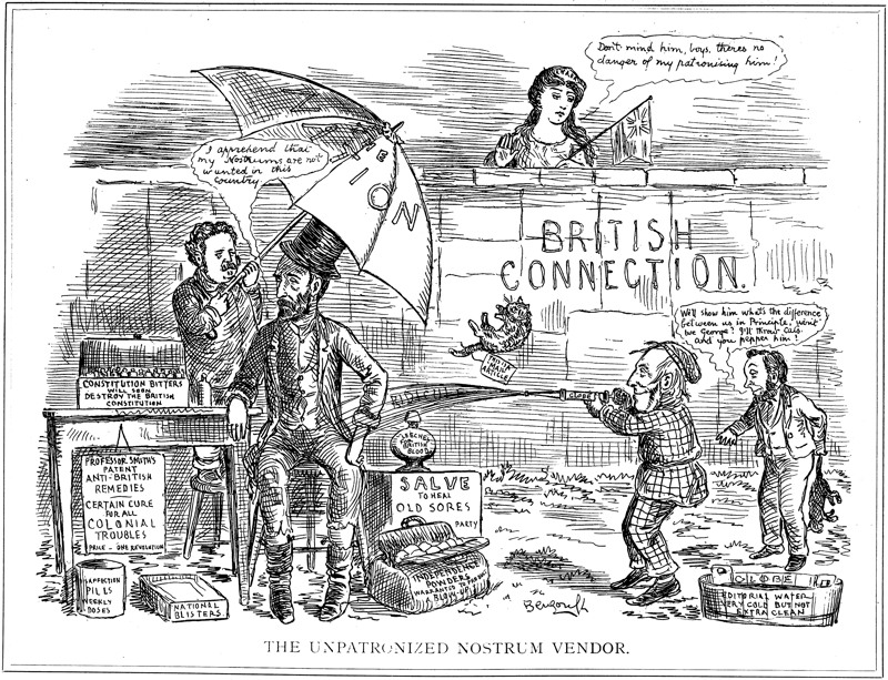 A great outcry was made by the Globe on the alleged anti-British tendency of the National Policy as announced by the Conservative leaders during the campaign. To the alarming statement that it would inevitably weaken British connection, the leading organ of the Opposition responded—“so much the worse for British connection.”