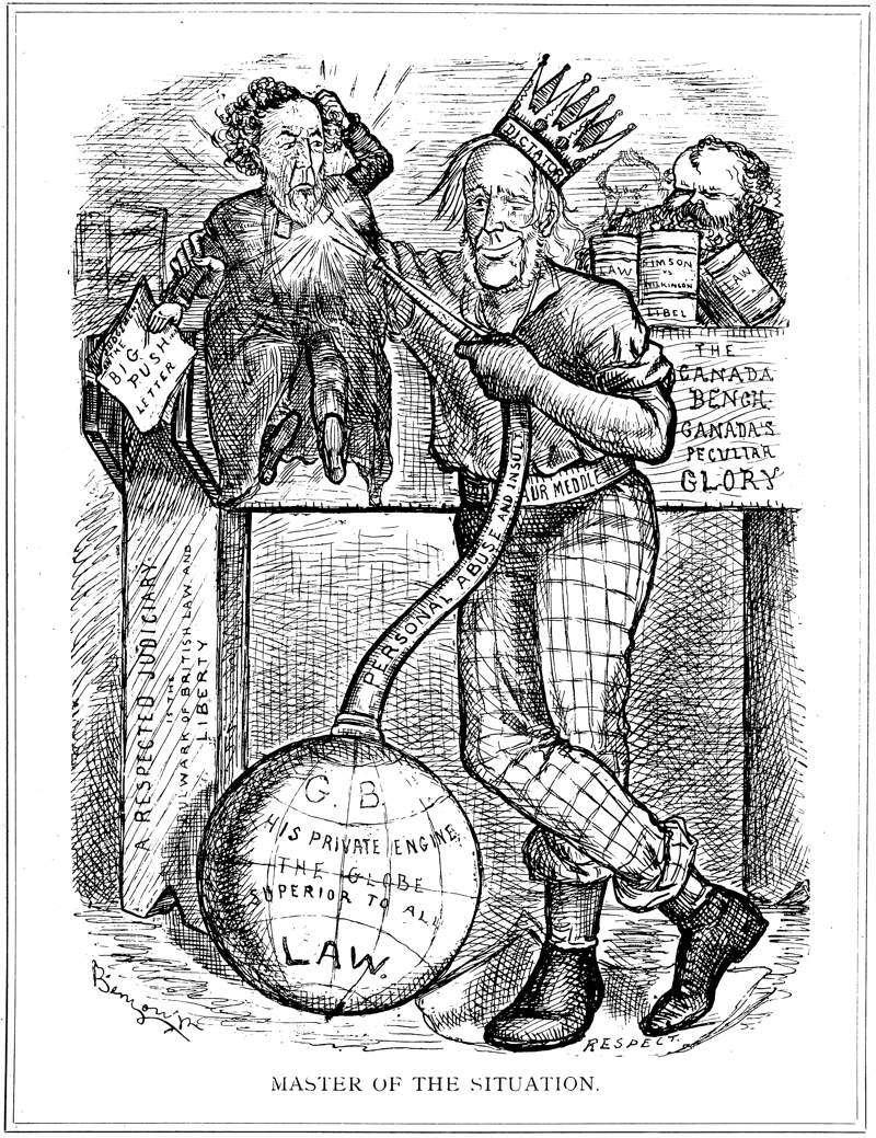 The action of Lieutenant-Governor Letellier of Quebec (an appointee of the Liberal Government), in dismissing the Conservative Government of Mr. DeBoucherville, was alleged to be a Party move to put the Liberals in possession of the Provincial treasury. The Lieutenant-Governor’s proceeding was roundly denounced as unconstitutional, and he was subsequently dismissed by Sir John Macdonald’s Government on account of it.