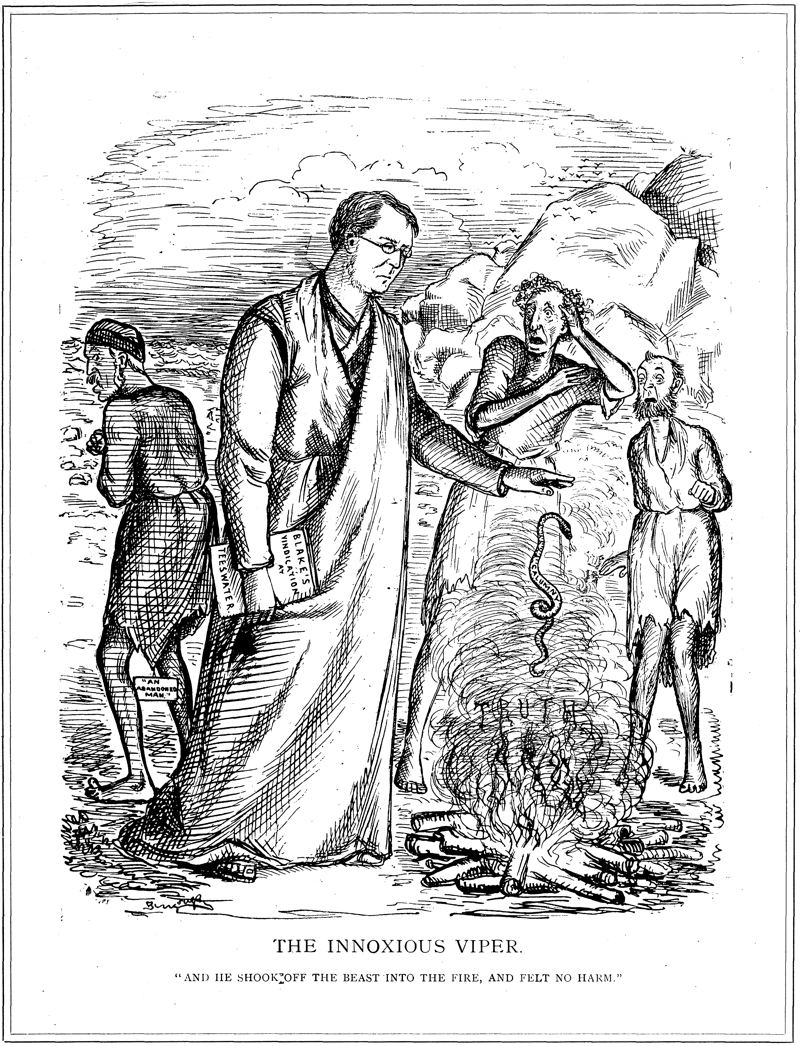 8I do not speak as an artist of the cartoons or the caricatures that illustrate our political history since 1873. To me their artistic merit is exceptionally great, but I am not qualified to speak as a critic of technique. I speak only as a public teacher who knows that the educational influence of pen or pencil may be greater than that of the living voice, and who rejoices when that influence is on the right side.