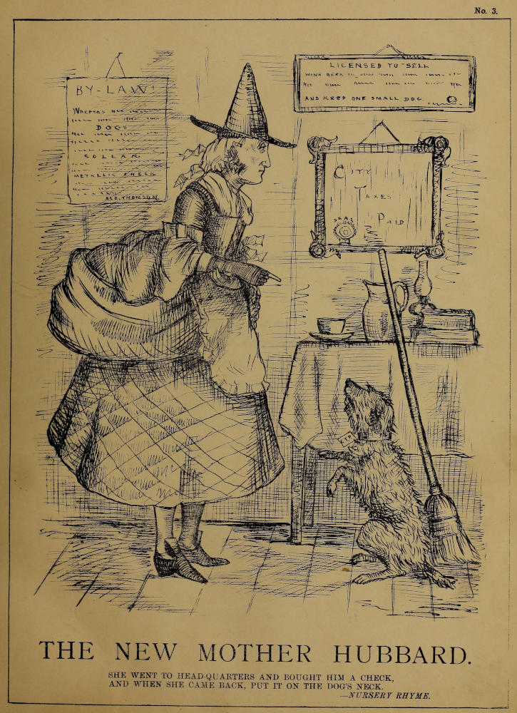 An allusion to the City By-Law, introduced by Alderman William Thomson, compelling all owners of dogs to obtain Metallic Checks certifying that the City Dog Tax had been paid.