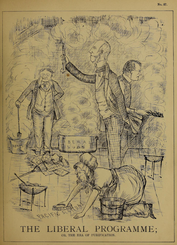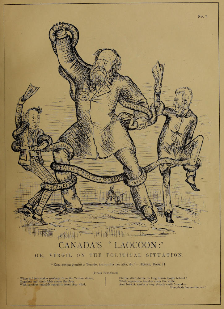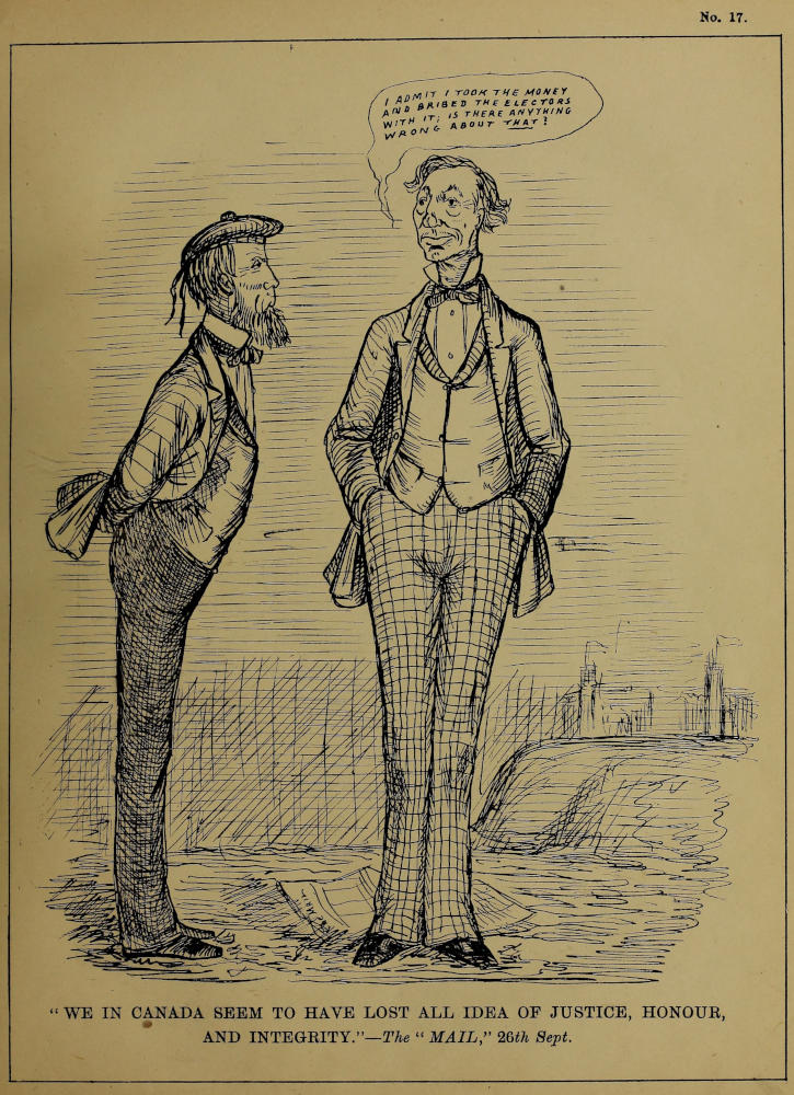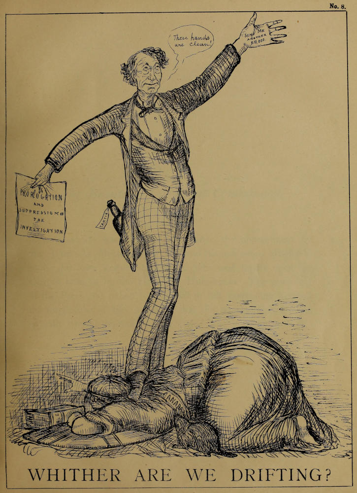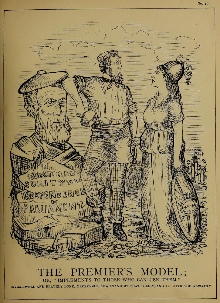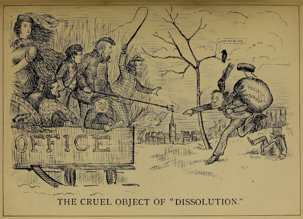 The leading English and American Newspapers had been interested spectators of the great Political Drama of the Pacific Scandal, and joined in praising the purity and pluck exhibited by the Canadian people in so promptly ejecting its authors from the high places they had dishonoured.