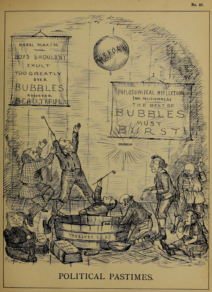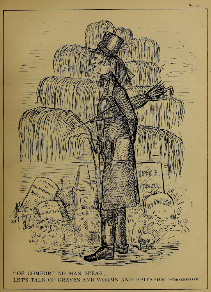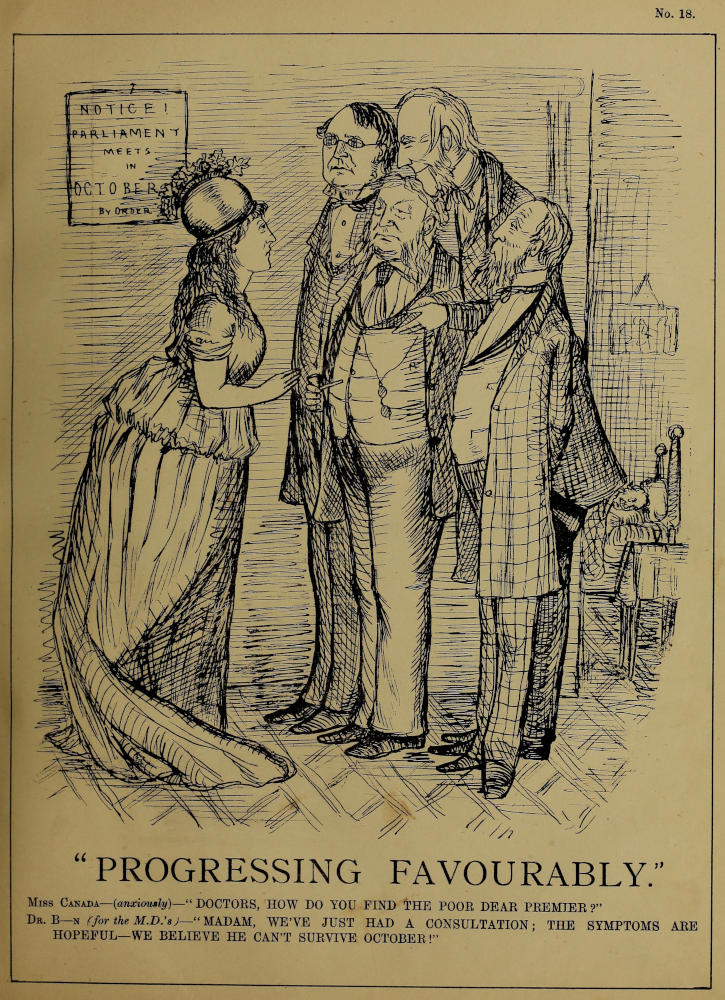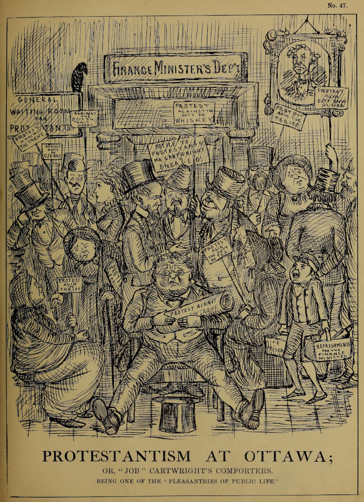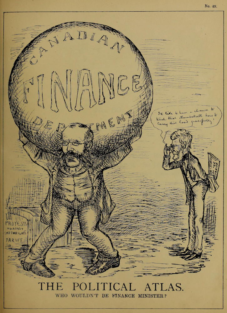 Hon. J. R. Cartwright, Finance Minister, became the object of incessant newspaper attack. Sir Francis Hincks, who boasted a great reputation as a financier, wrote a profound essay in The Mail to prove Cartwright’s incapacity.