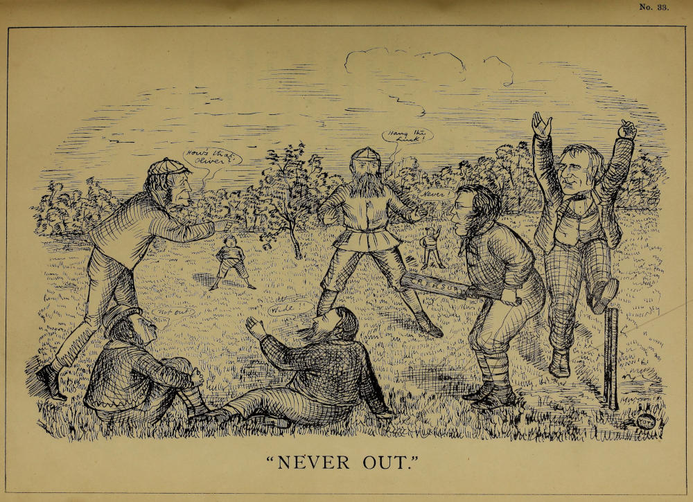 A Bill for the incorporation of the Orange Societies was at this time occupying the attention of the Ontario Legislature, and creating considerable interest. It was treated as a test question when it came to the vote, and the Opposition anticipated the defeat of the Government, who, by the way, opposed the measure. The decision of the umpire, after the ball was bowled, is pictured in the cartoon.