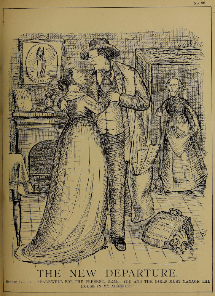 Spouse B—e.—“FAREWELL FOR THE PRESENT, DEAR; YOU AND THE GIRLS MUST MANAGE THE HOUSE IN MY ABSENCE!”
