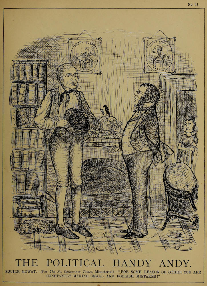 SQUIRE MOWAT.—(Per The St. Catharines Times, Ministerial)—“FOR SOME REASON OR OTHER YOU ARE CONSTANTLY MAKING SMALL AND FOOLISH MISTAKES!”