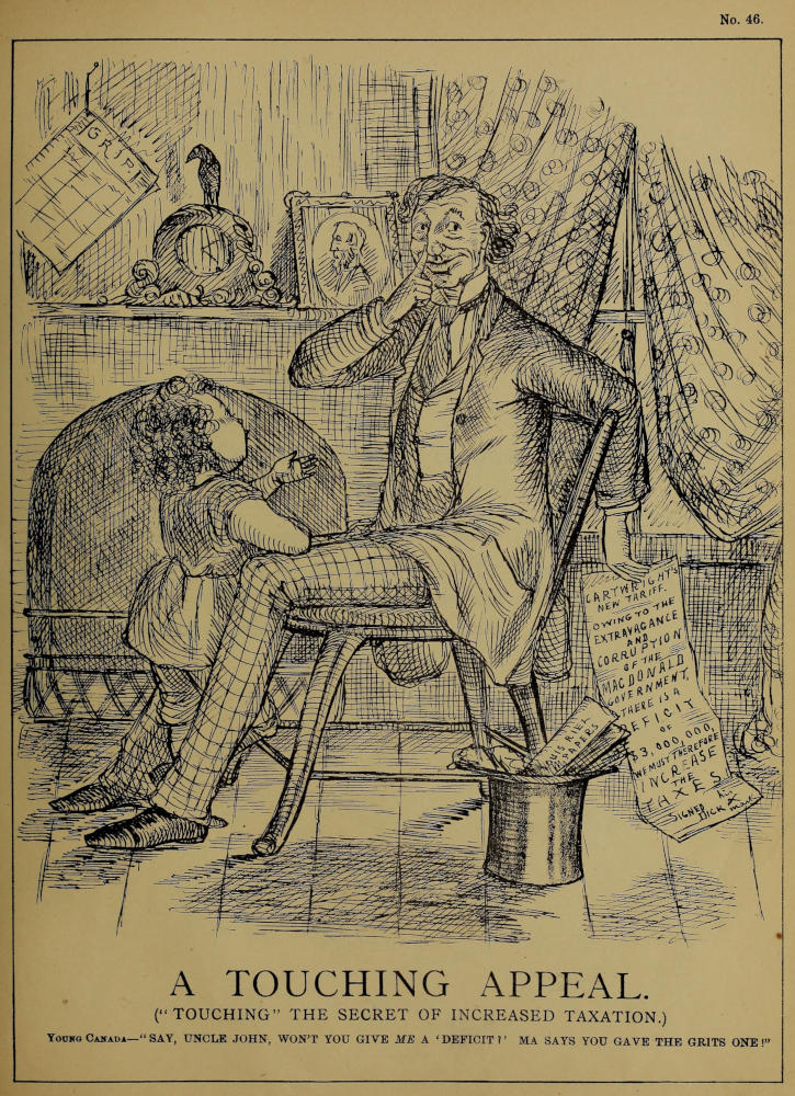 Young Canada—“SAY, UNCLE JOHN, WON’T YOU GIVE ME A ‘DEFICIT?’ MA SAYS YOU GAVE THE GRITS ONE!”