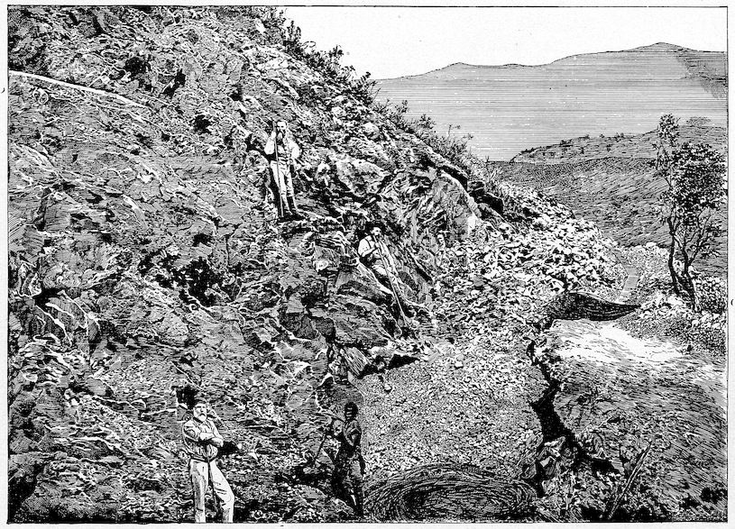 | Geology of the mine and surroundingsâSection of reef strataâSurface soilâCalcareous tufaâLight colored shalesâBlack carboniferous shaleâLimoniteâLandslipsâBurning reefâSulphur vaporsâNatives afraid to workâCoal plantsâFire and choke-dampâIgneous rocksâContraction and expansion of mineâStrata of mine itselfâRed sand, tufa, yellow groundâBlue groundâRich and poor claimsâRemarkable bouldersâGreasy slipsâMaskelyne and Flightâs observations. | 136â150 |