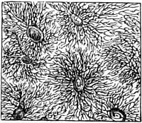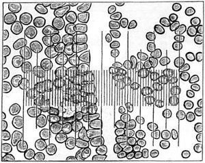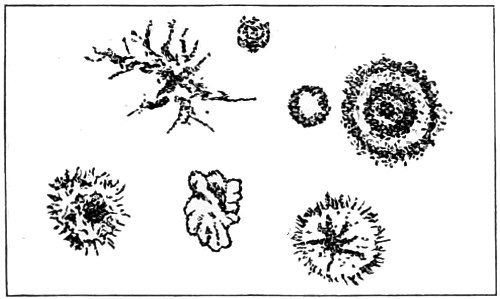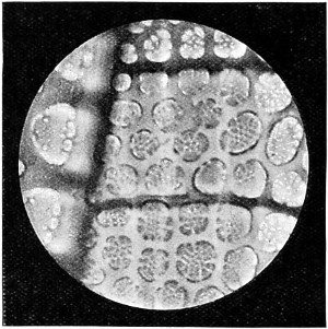59 For instance, where the yellow Palmella is found the Chlorococcus will assume a yellow tinge in its soridial stage. Viewed by transmitted light the sori are seen as opaque balls, with an irregular outline.