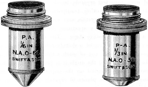 23 Prof. Abbe “On Stephenson’s System of Homogeneous Immersion for Microscope Objectives,” “Journal of the Royal Microscopical Society,” II. (1879), p. 256, and on “The Essence of Homogeneous Immersion,” Ibid., I. (1881), p. 131.