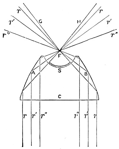 Page 21, “in Fig. 13, if S, S′ are a pair of conjugate foci,” changed to read “in Fig. 12, if S, S′ are a pair of conjugate foci,”. S and S′ are in Fig. 12.