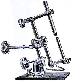 43 It is quite possible also for the student to make his own microscope stand. Mr. Field in the “English Mechanic,” pp. 171 et seq., 1897, furnishes numerous working drawings for the construction of a high-class stand, together with patterns for the metal work.