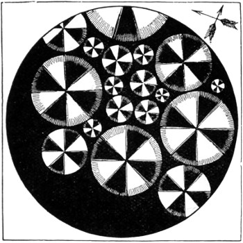 10 Diffraction effects may be observed without a microscope, indeed, the more striking are seen in connection with telescopic vision. A beautiful series of phenomena in illustration of the diffraction of light may be produced as follows: Draw on a large sheet of paper a series of geometrical figures, arranged at equal distances in a circle. A collodion photographic picture of these being taken, a series of small transparent apertures in the elsewhere opaque film will result. This film is then mounted, so that it may be in turn brought before the centre of a small hand telescope, previously adjusted to view an image of the sun. In this way we have an apparatus of the most compact form, and by means of which a series of fifty or more phenomena may be brought into view in a few minutes. These pictures being very small (occupying on an average area one-tenth of an inch in diameter), inaccuracies of surface and substance of the glass may be neglected. A film of Canada balsam with which the glass is cemented over the picture produces no disturbance. There is a manifest advantage in the figures being small, as the size of the image is in inverse proportion to the size of the aperture.